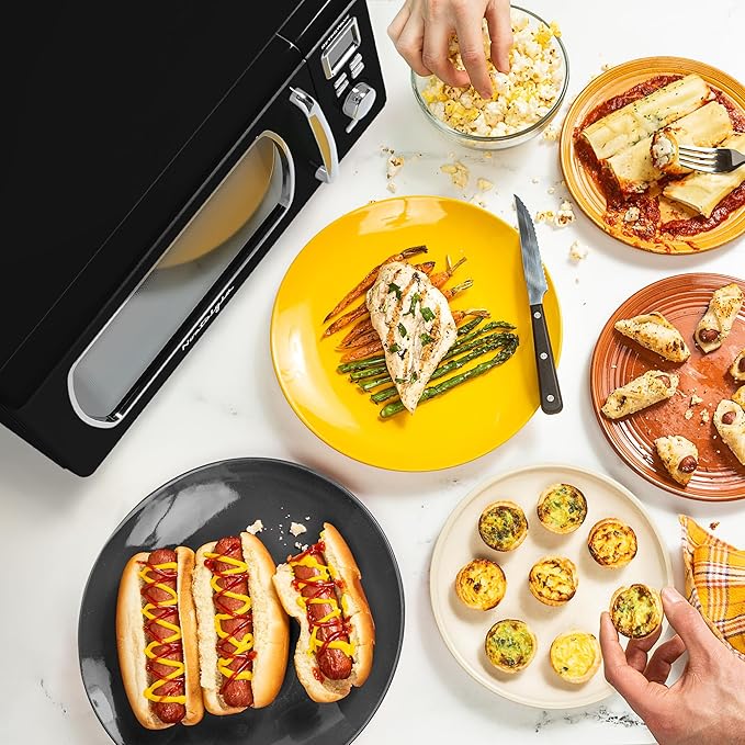 POWERFUL UNIT: With all the cooking capacity you need, this compact 900-watt microwave quickly cooks and re-heats food with simple and easy-to-navigate cooking settings. Just turn and push the program dial to start.